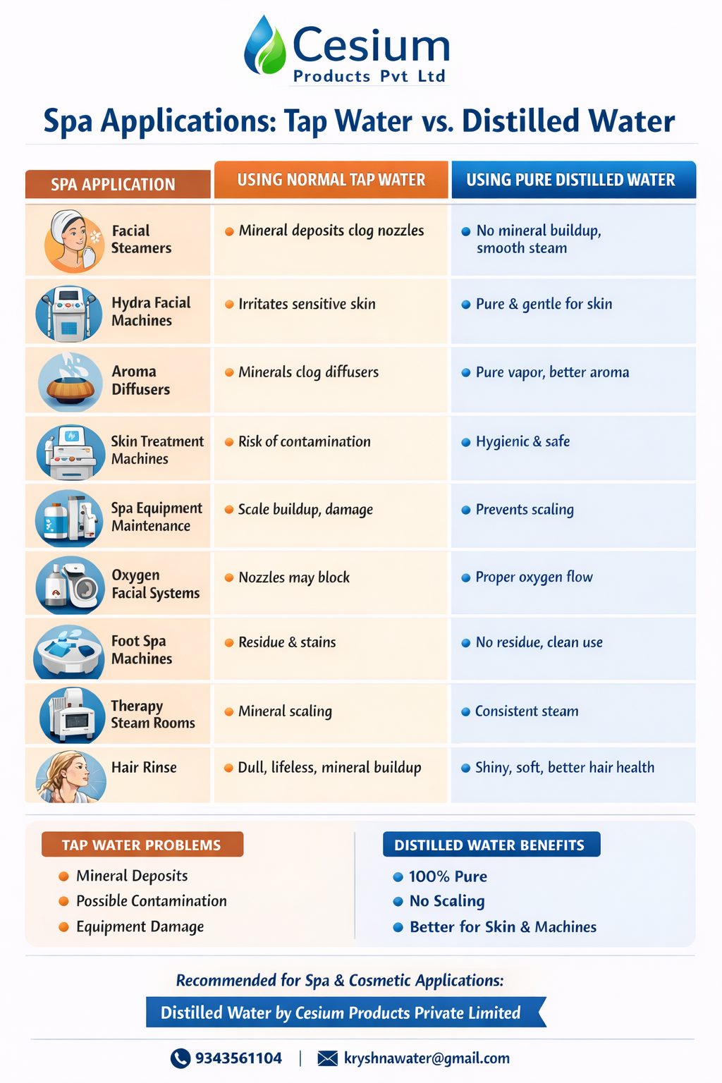 Using pure distilled water instead of normal tap water can significantly improve equipment life, treatment quality, and hygiene standards.